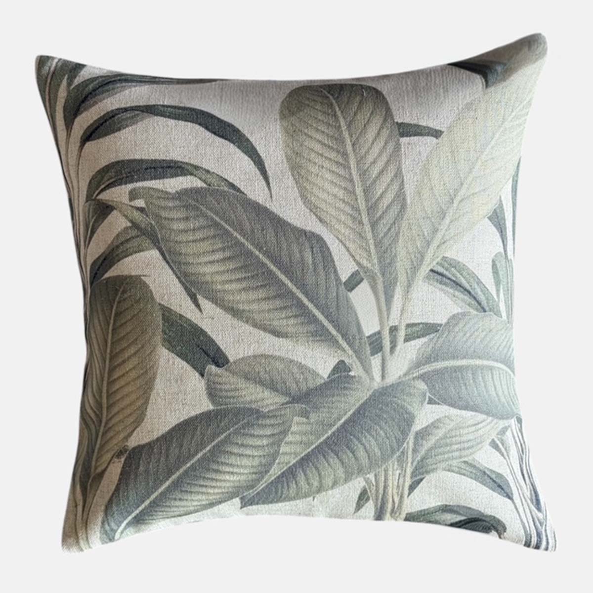 Inspired by nature the printed design on this cushion includes a variety of leaves in subtle shades of green and grey. Designed specifically to be used in conservatories.