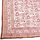 This delicate pink floral printed quilt/throw has a floral print featuring pinks, red and white on a blush background. The contrasting red trim running around the edge of the quilt compliments the printed flowers. The back of the quilt has the same design but the colours are reversed, making the quilt double sided.