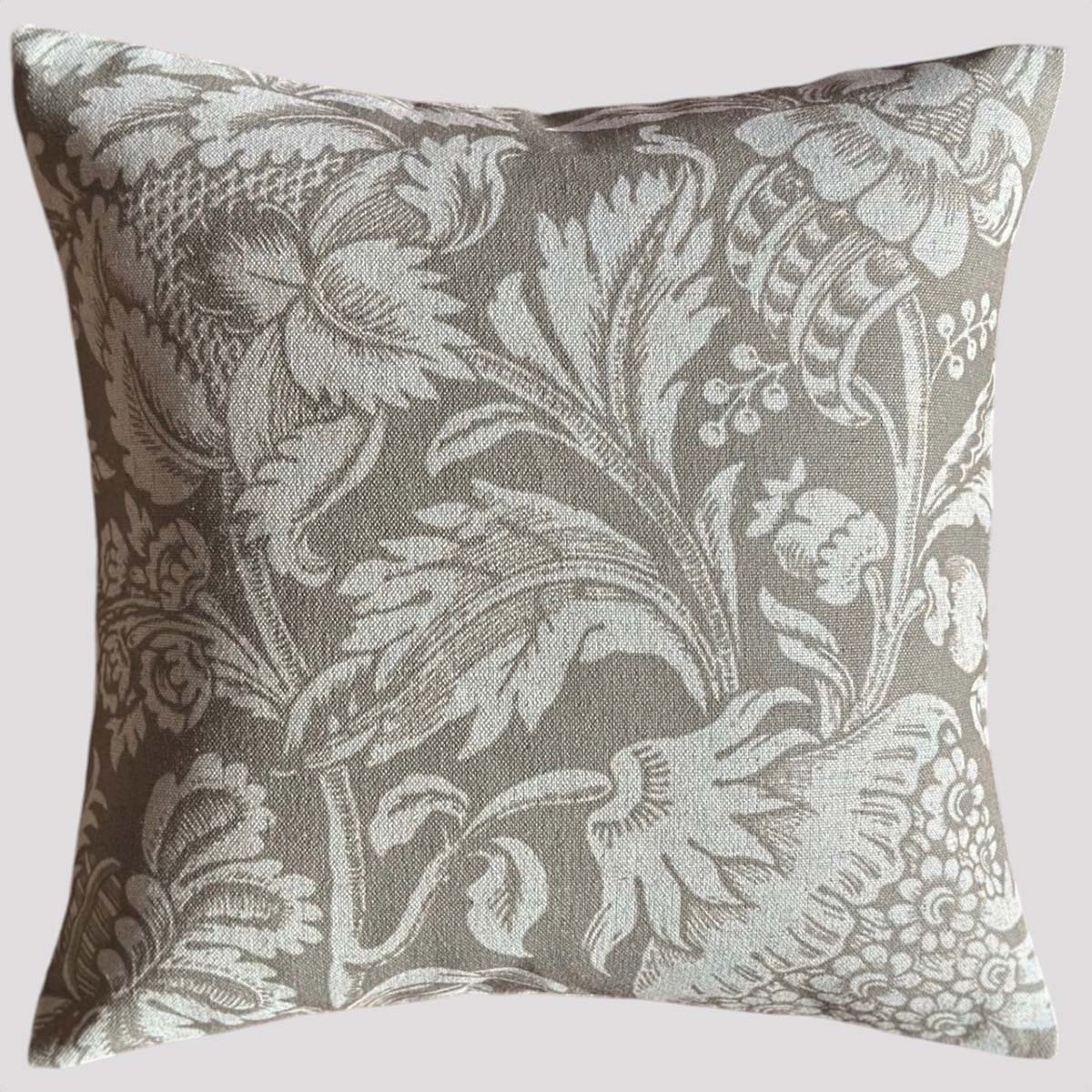 Printed on a natural linen-mix base cloth. Feather pad included.