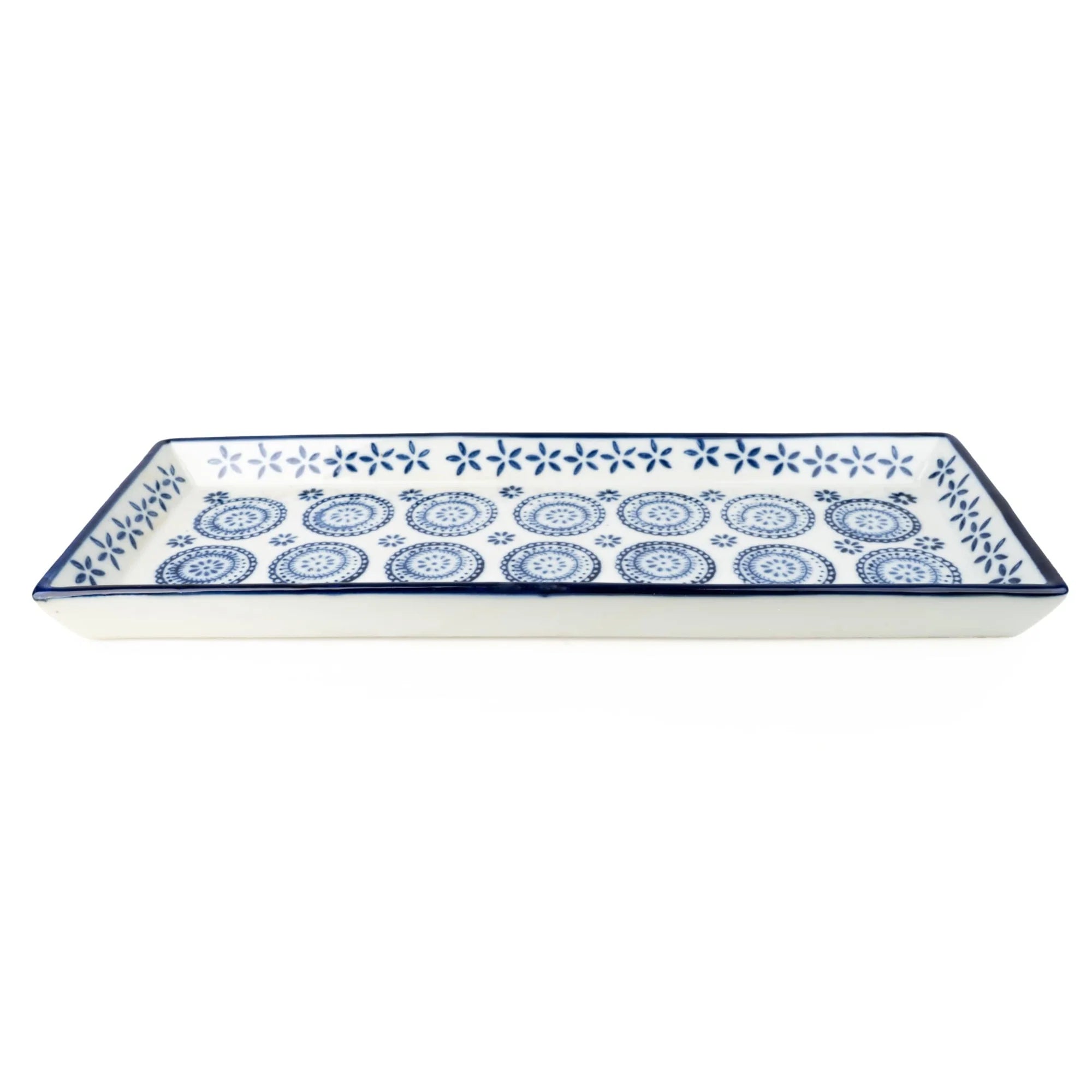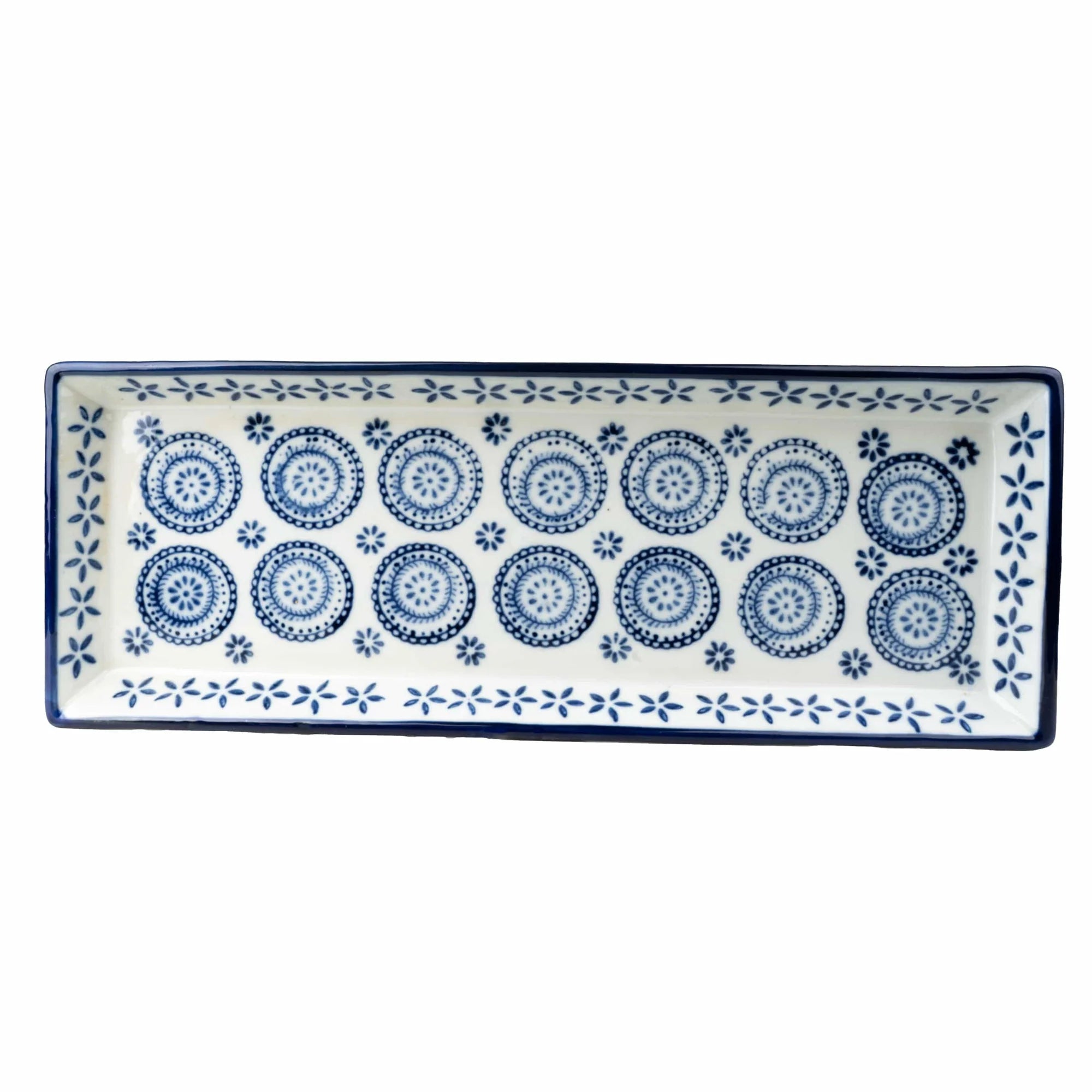 This elegant rectangular plate is adorned with intricate, hand-painted blue motifs, presenting a timeless aesthetic that captures the essence of traditional craftsmanship. Perfect for serving appetisers or as a decorative piece, it will blend seamlessly with both contemporary and country chic interiors.