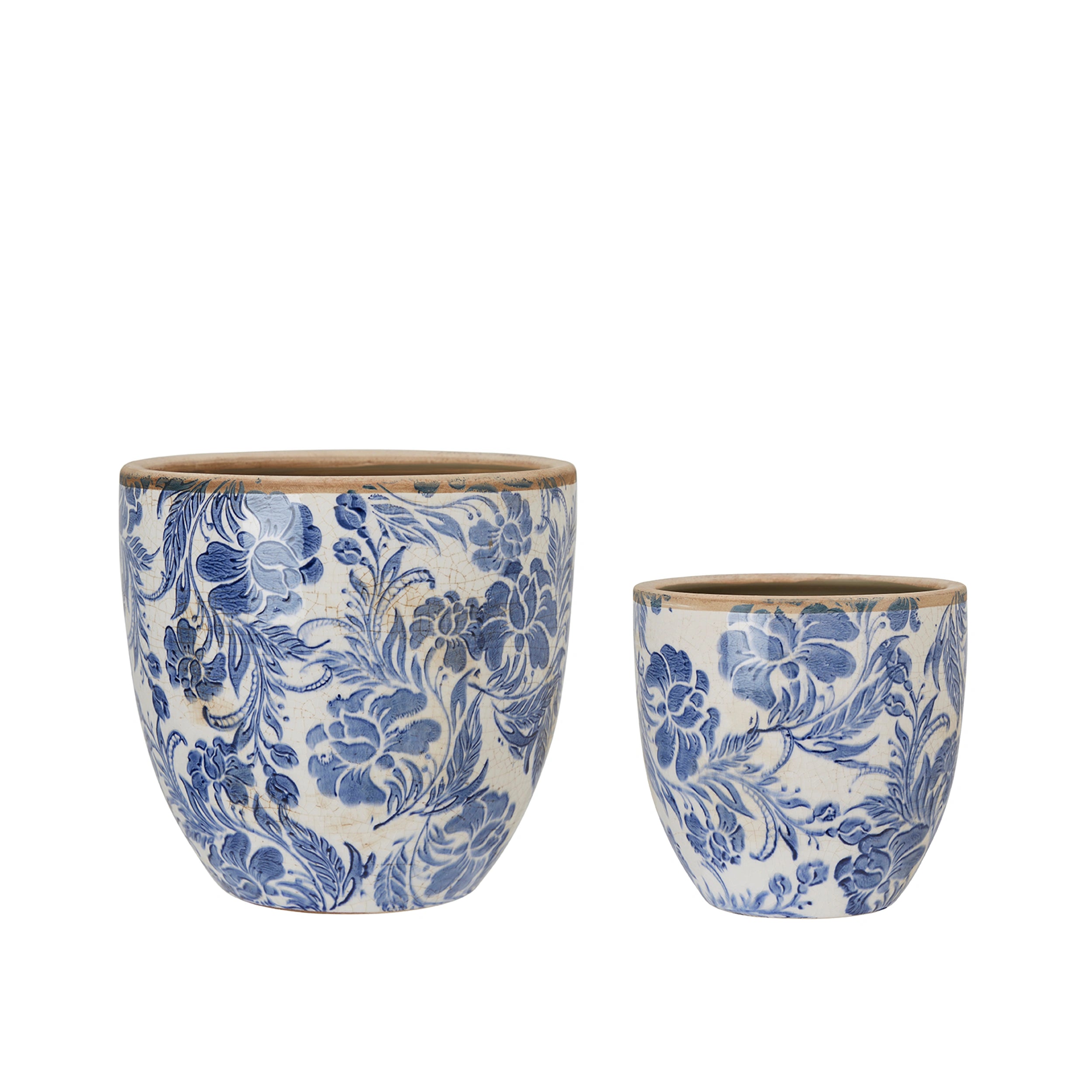 This charming blue and white floral stoneware plant pot is the perfect way to infuse your home with a touch of country chic. Its timeless design complements any room, adding a fresh, airy vibe while showcasing your favourite plants. Whether placed in the living room, kitchen, or bedroom, this pot brings a cozy, elegant flair to your space. Available in two sizes.