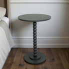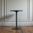 The elegant Verona round side table in diesel, features a distinctive pedestal base and slim profile. The perfect small table for any room.